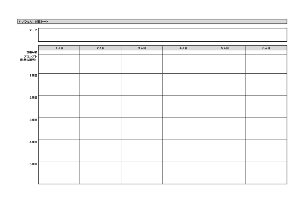 対話シートというのは、各プレイヤーが性格AIとして発言した意見を記入しておくシートです。